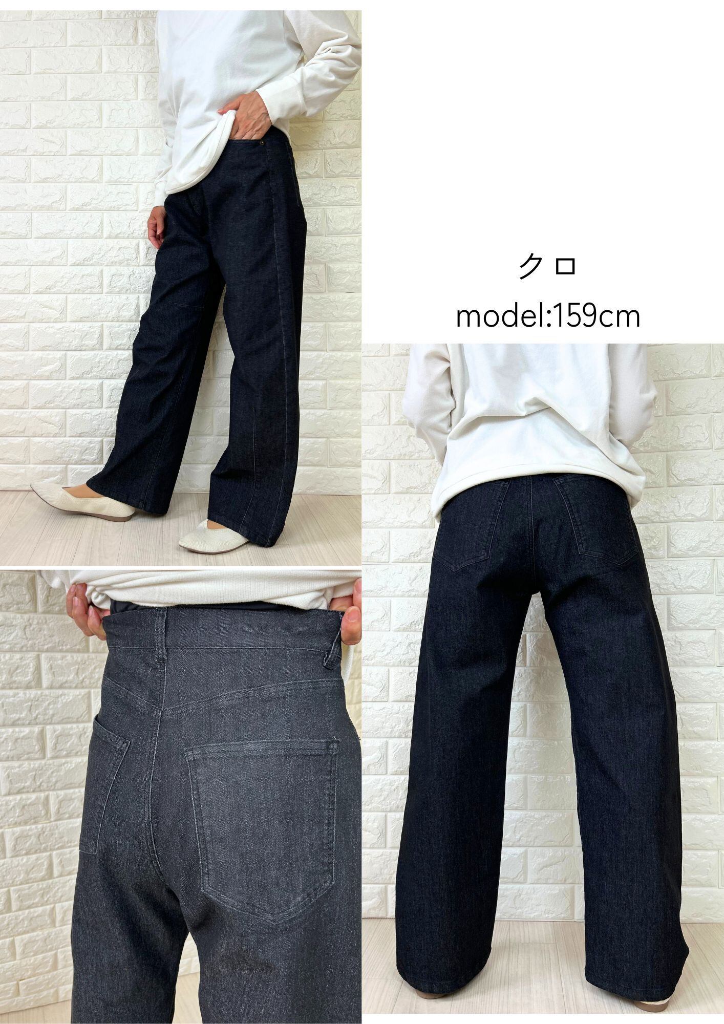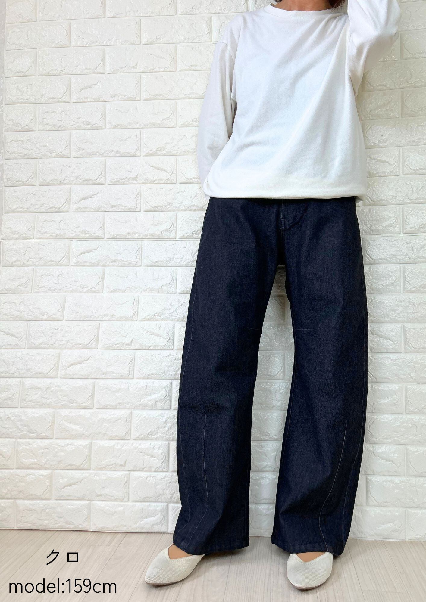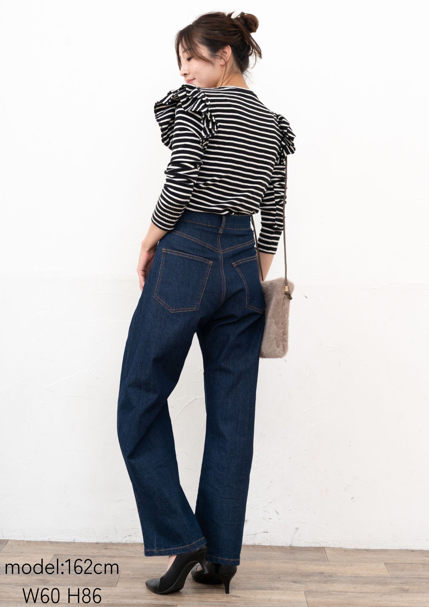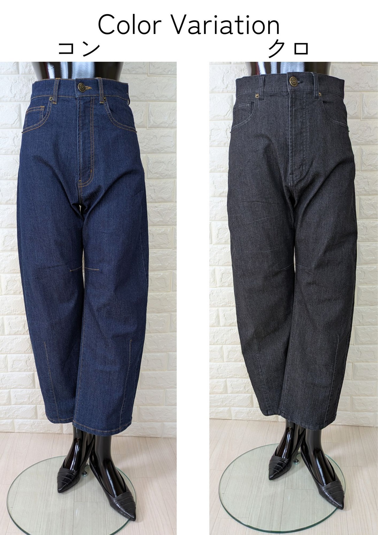 No44807 バレルレッグデニム 前ファスナーあき S~Ⅼ ストレッチ コン クロ