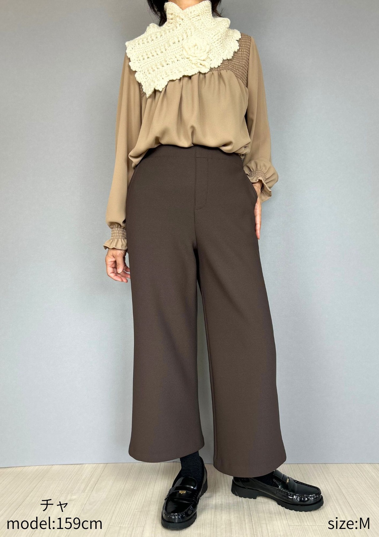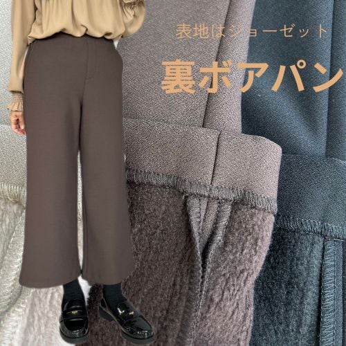 昨年好評いただきました裏ボアジョーゼット生地の8分丈パンツ。ブーツやスニーカーなどに