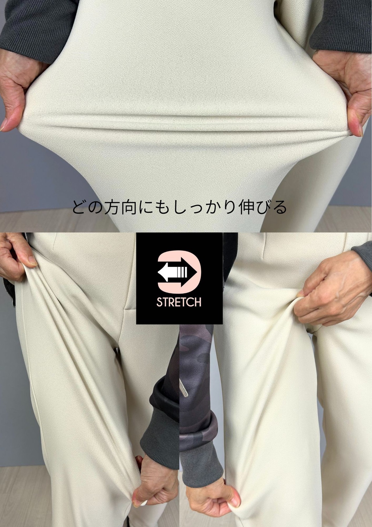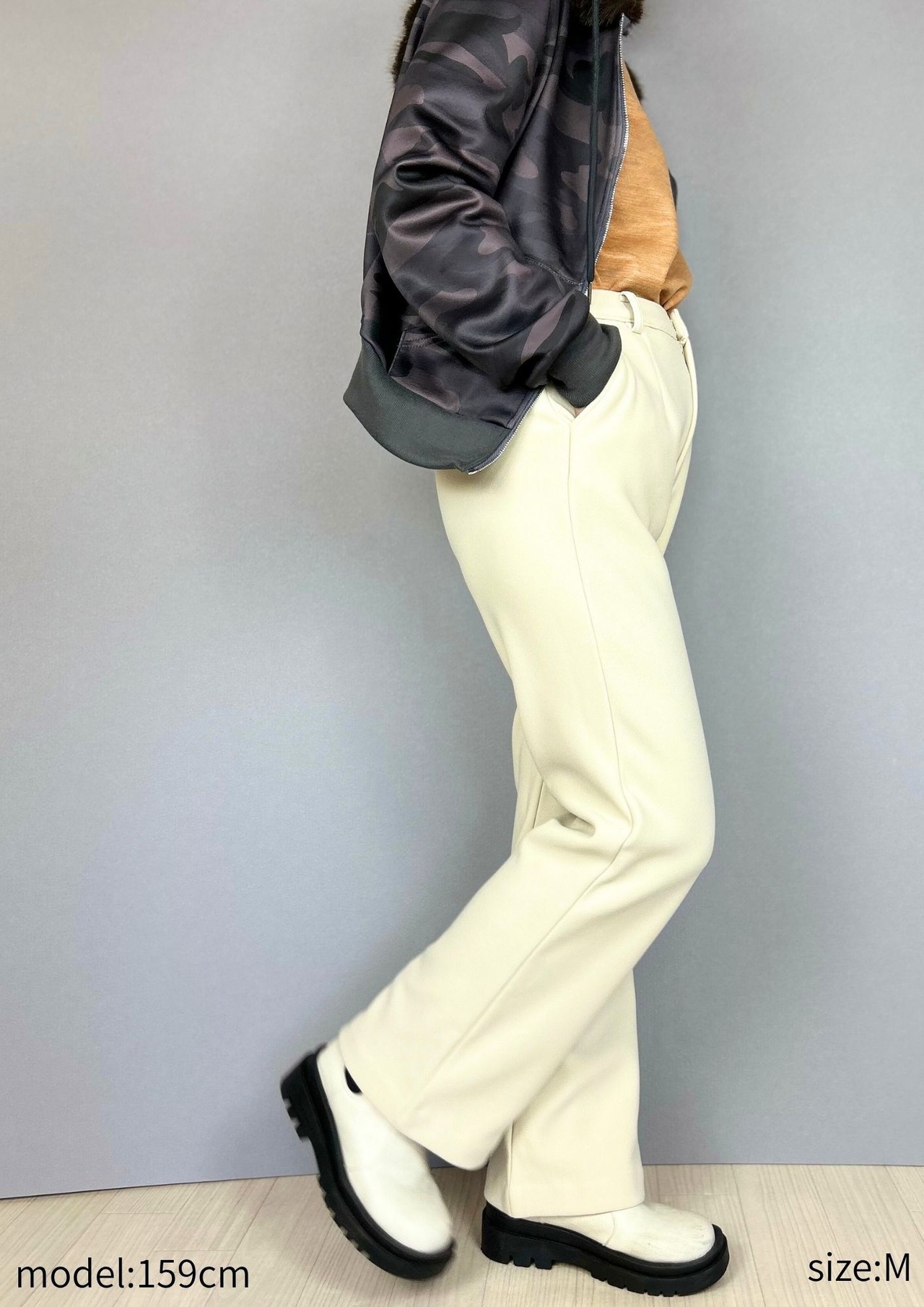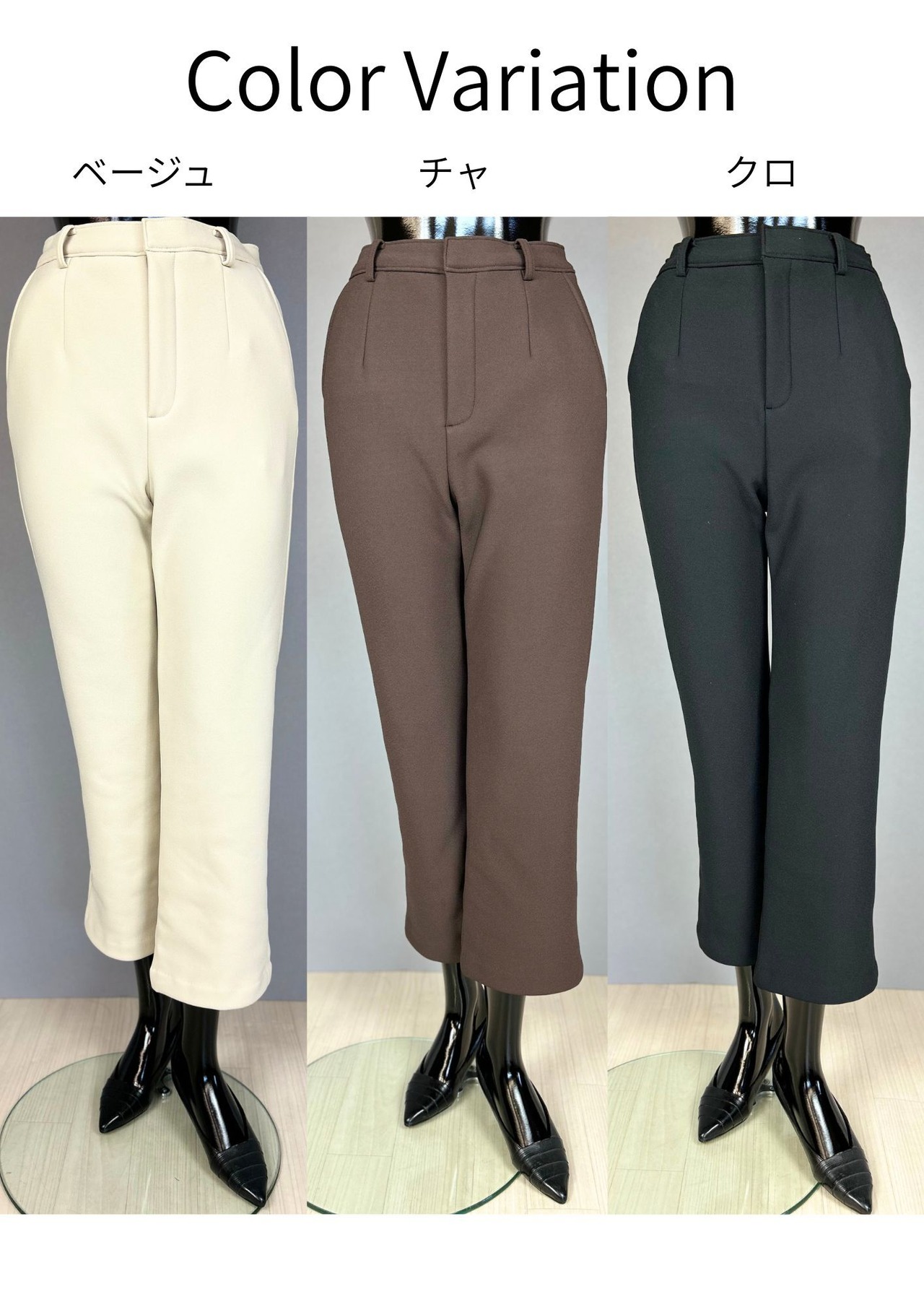 昨年好評いただきました裏ボアジョーゼット生地の前ファスナーあきストレートパンツ。