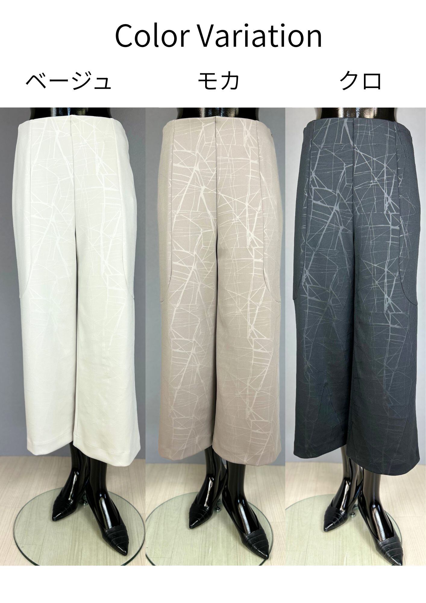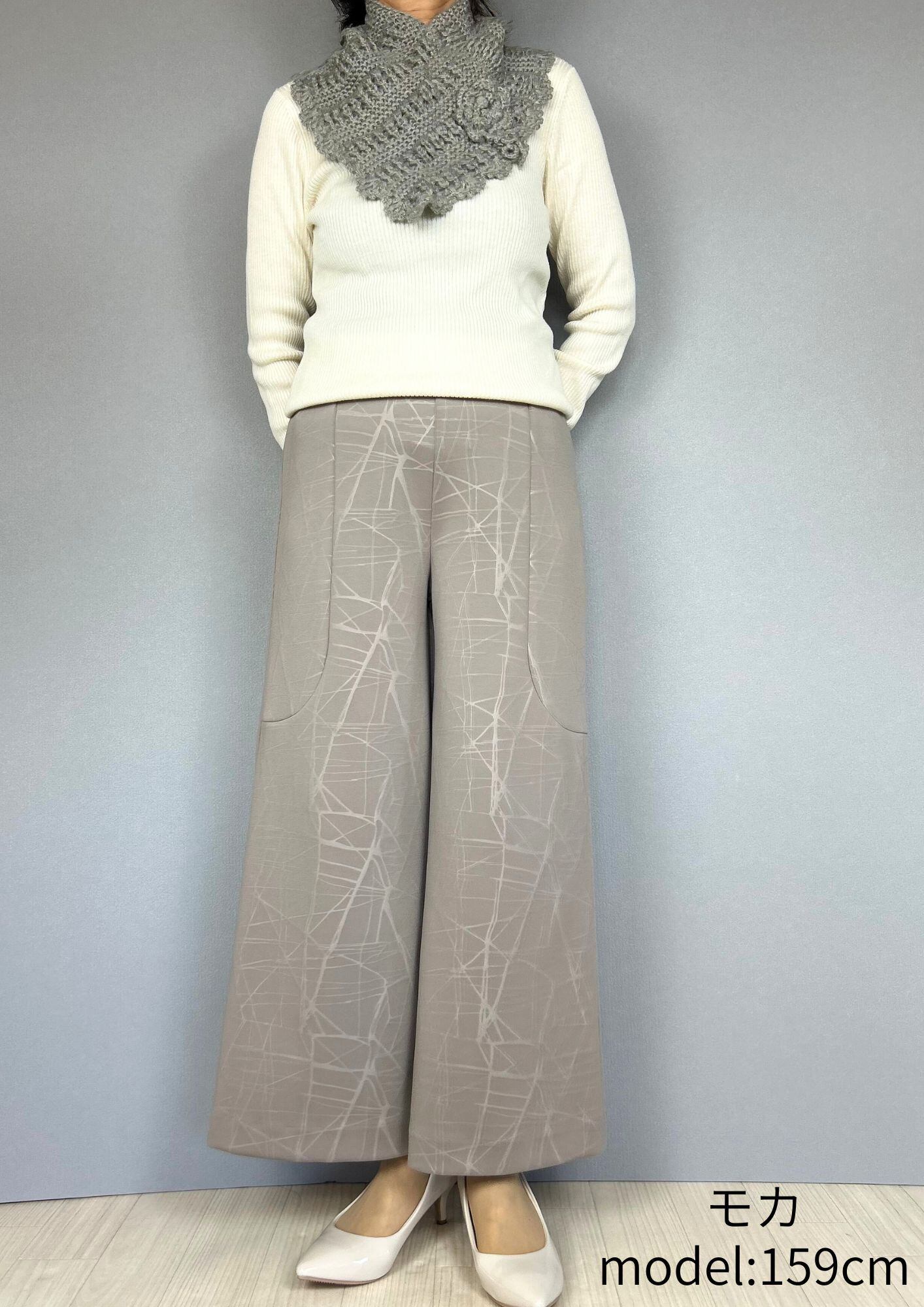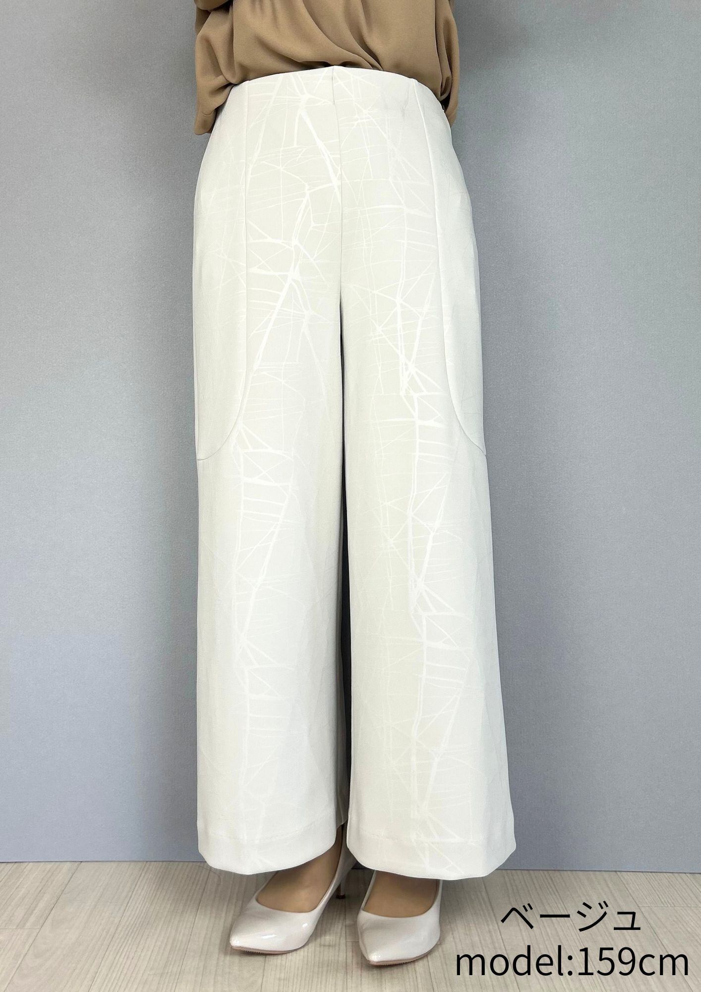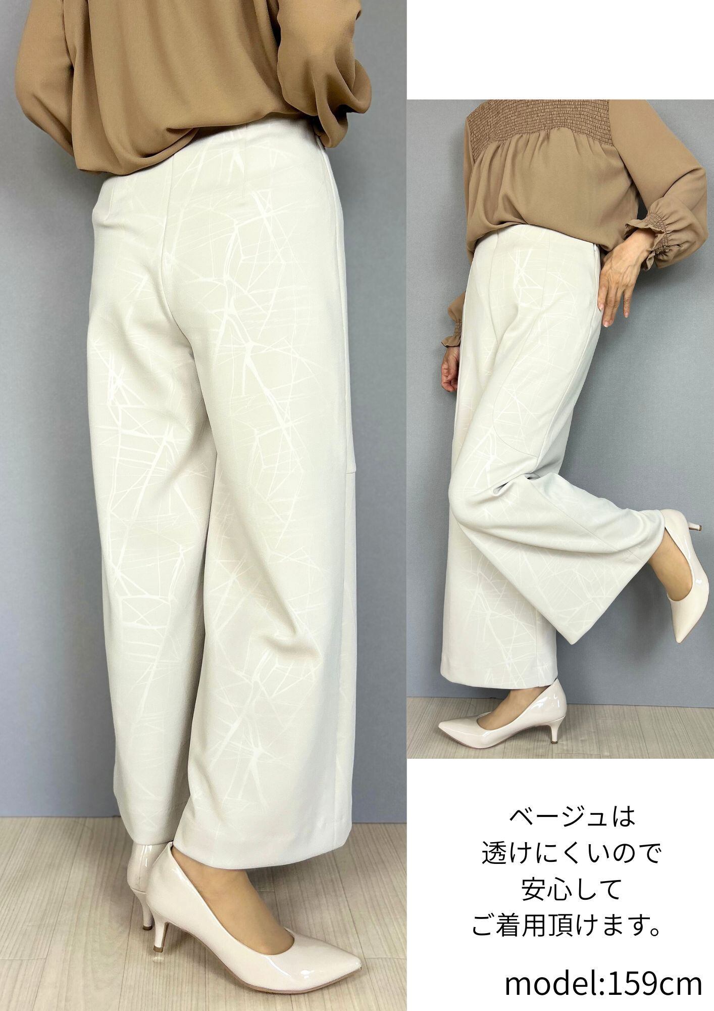 アクアジャージ生地にエンボス加工(柄を立体的に加工)した 1ランク上のワイドパンツ