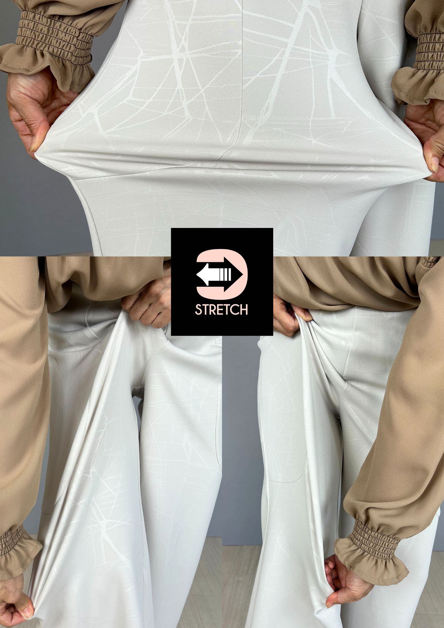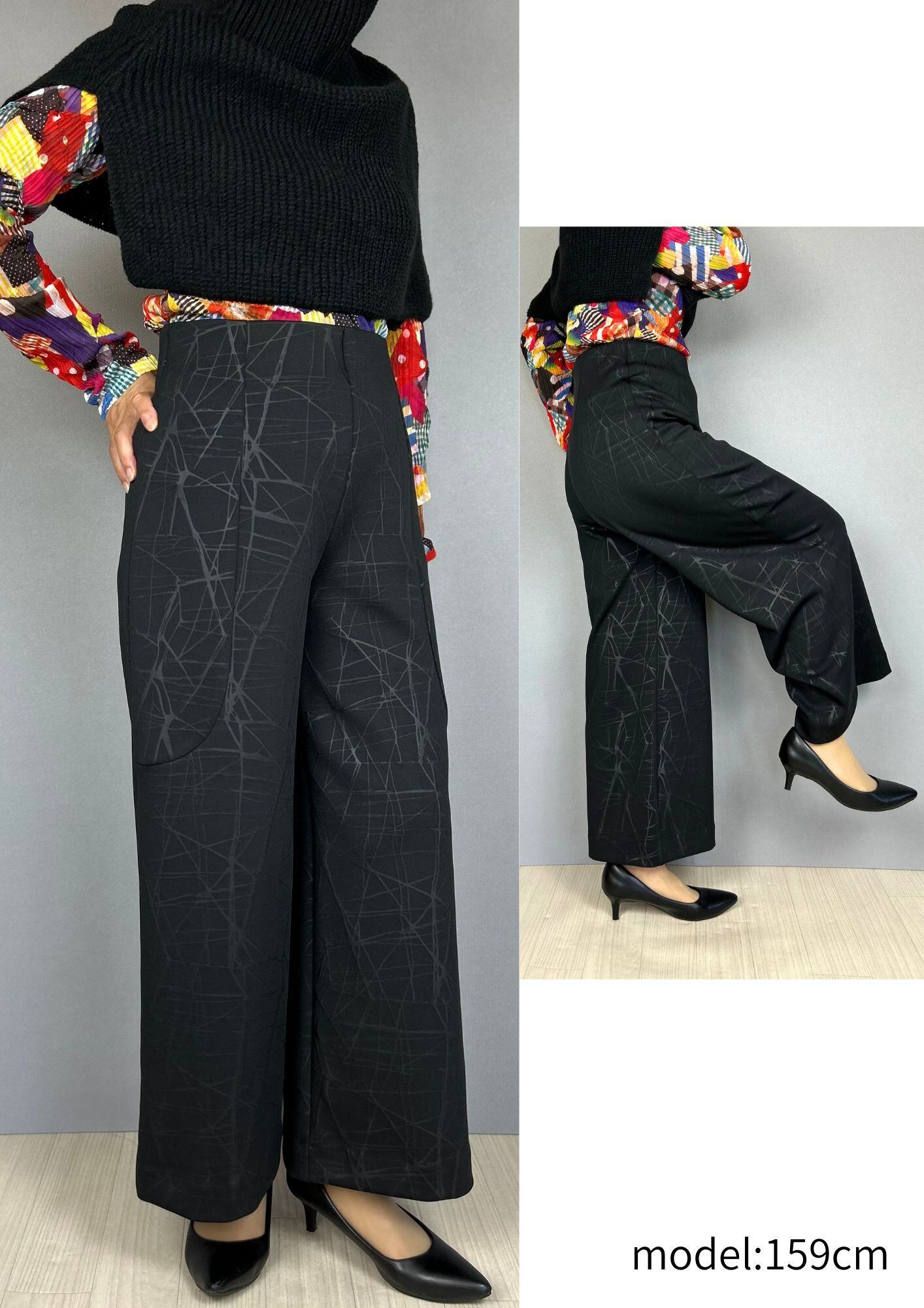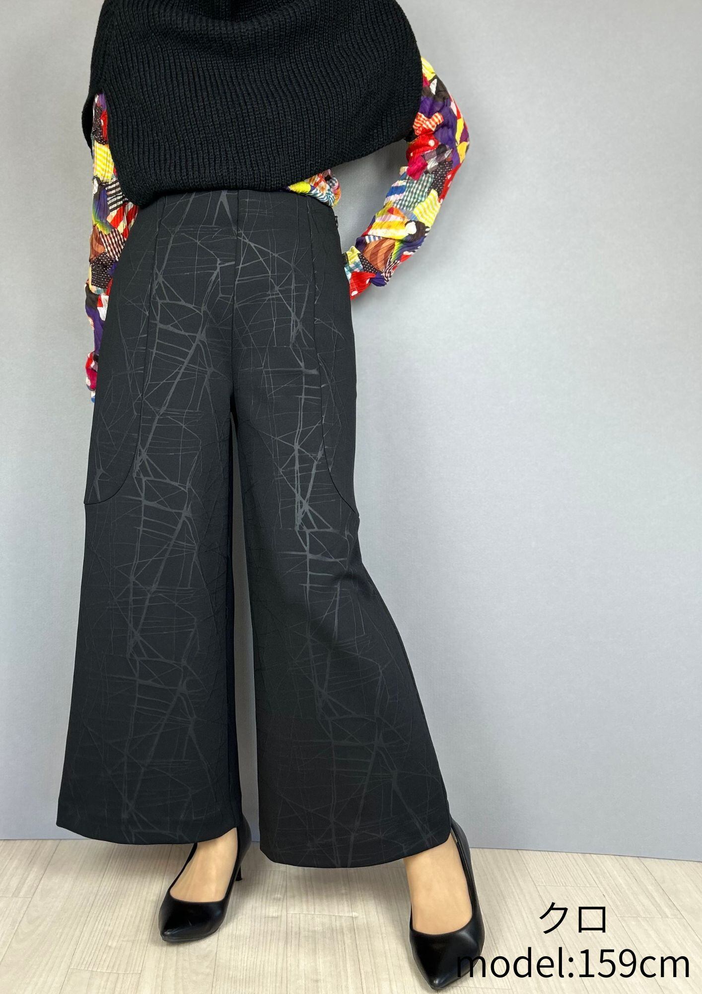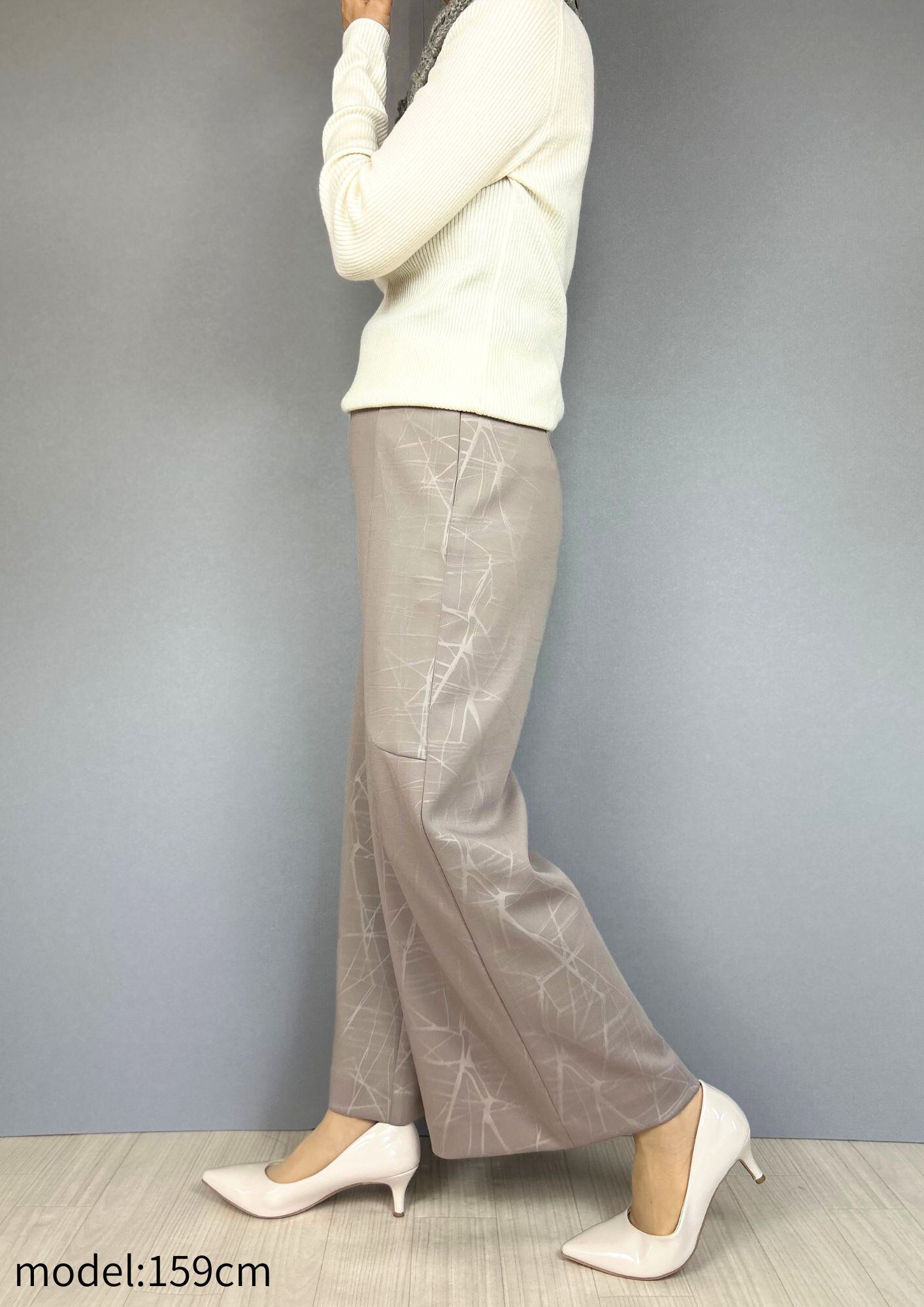 アクアジャージ生地にエンボス加工(柄を立体的に加工)した 1ランク上のワイドパンツ