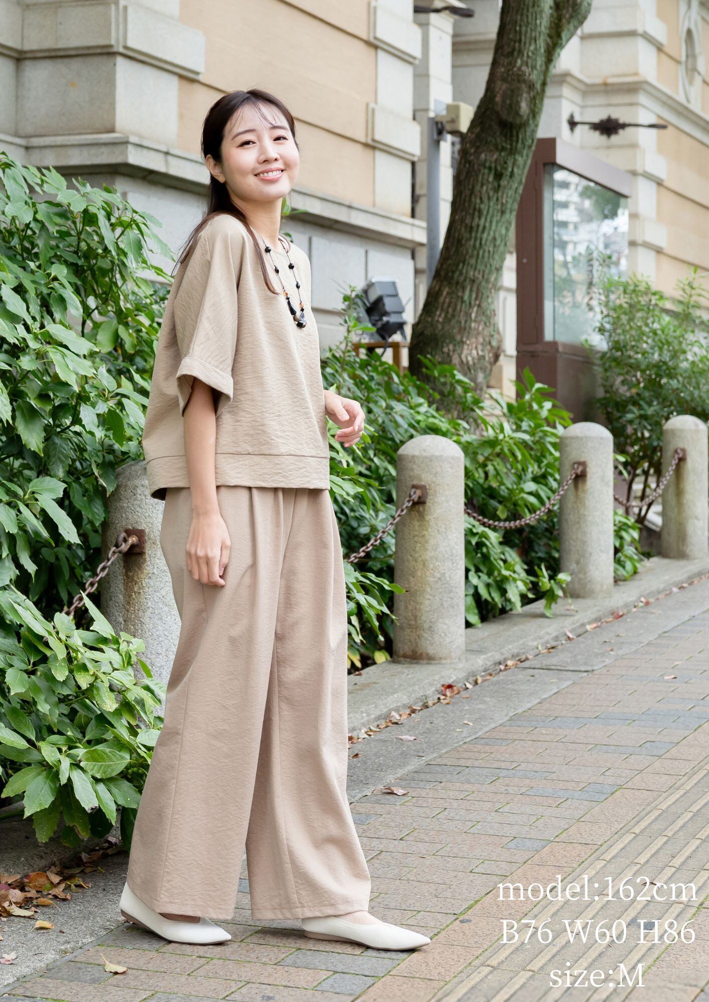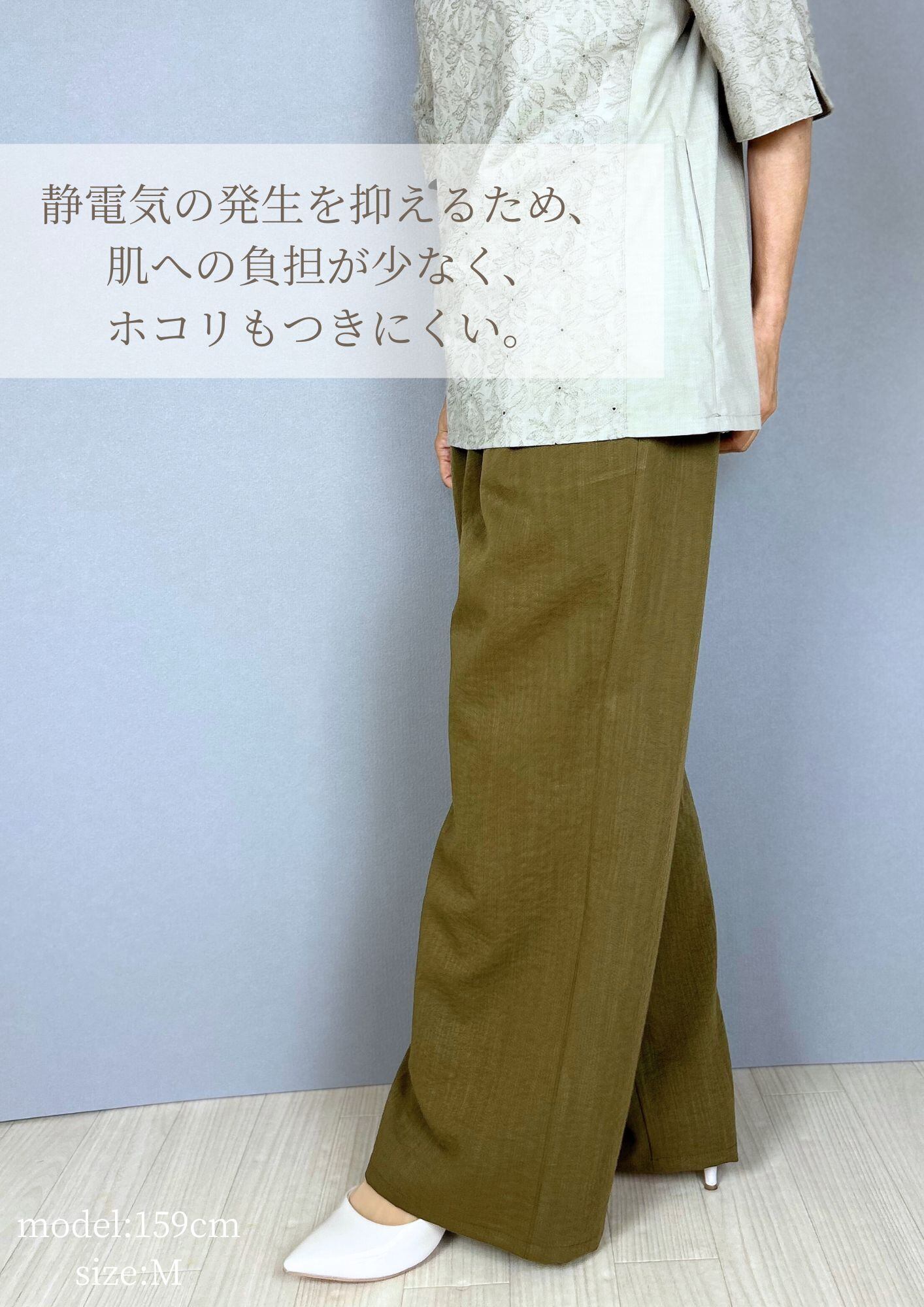 バンブー素材ワイドパンツ No45005 セットアップ Ⅿ~Ⅼ 天然素材 涼感