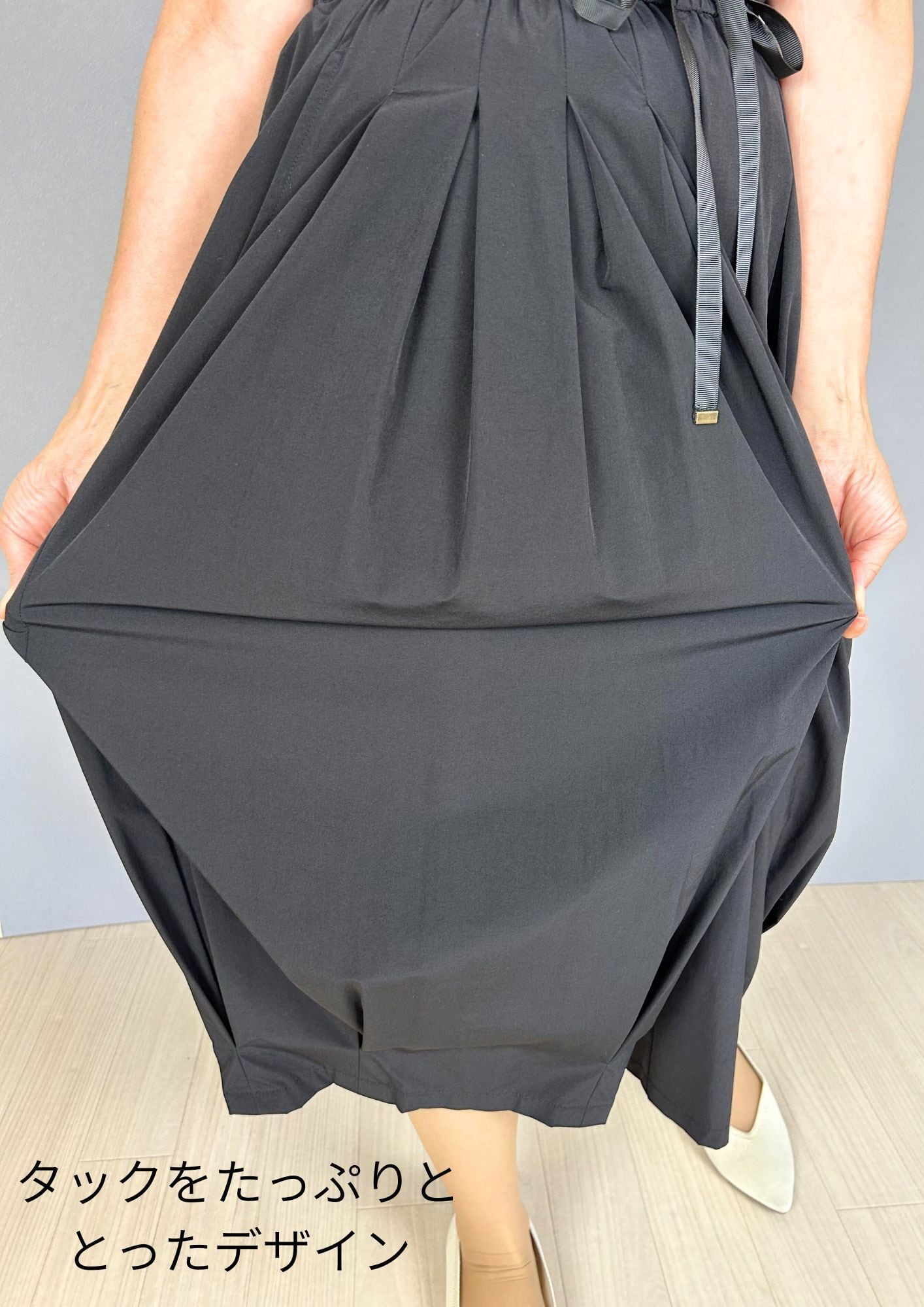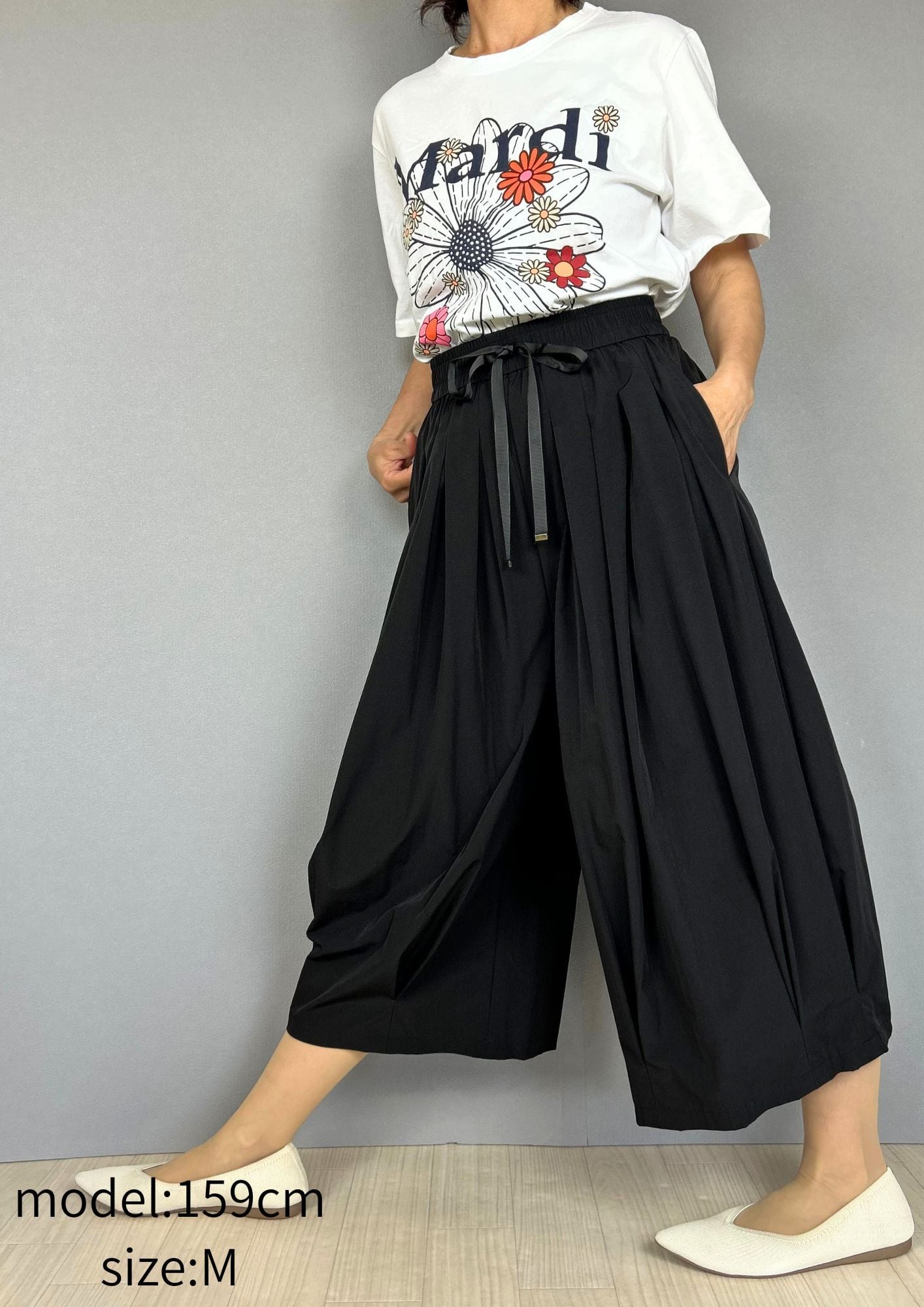 ウエストと裾にタックを入れたかわいいシルエットのコクーンガウチョ。