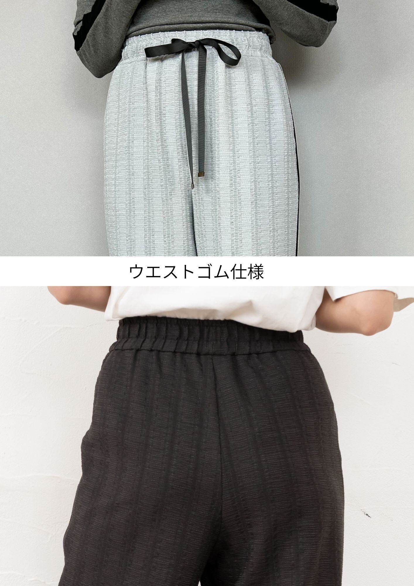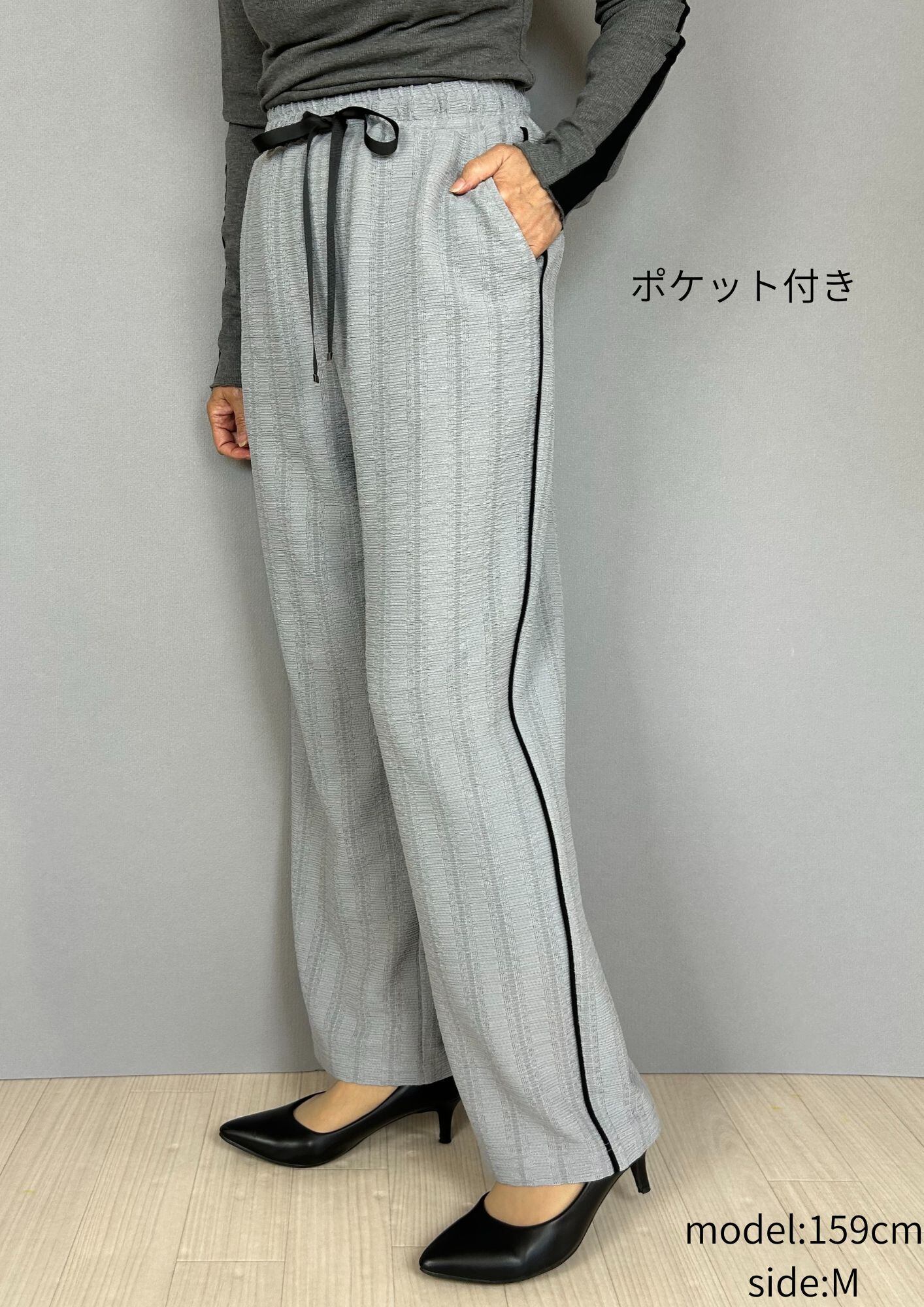 ウエストオールゴム ドロスト付き 前ポケット 脇ライン 裏地つき 中国製